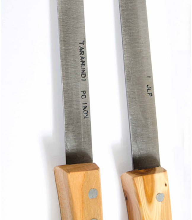 Ofrecemos una amplia variedad de cuchillos artesanales, incluyendo cuchillos patateros y de mesa en tamaños que van desde los 9 cm hasta los 11 cm, con diferentes acabados. También contamos con cuchillos de trinchar y cocina, disponibles en tamaños de 14 cm a 22 cm de hoja. Para los amantes del buen jamón, nuestros cuchillos jamoneros de 24 cm proporcionan cortes precisos. Además, disponemos de cuchillos queseros y cuchillos de monte, todos elaborados con materiales de alta calidad y diseñados para un rendimiento excepcional en cada uso.